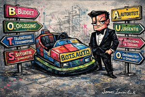 Het is dynamisch, onvoorspelbaar en vraagt om wendbaarheid, scherpte en nieuwsgierigheid. Die fascinatie voor botsauto’s vormt nog altijd de kern van hoe ik naar verkoop kijk. Het draait niet alleen om het halen van een doel, maar om het vermogen om onderweg kansen te herkennen en effectief om te gaan met wat zich aandient. BOTSAUTO is daar een directe vertaling van: een flexibele en praktische aanpak die helpt om richting te houden, waarde te creëren en resultaten te boeken – ongeacht hoe het speelveld beweegt.