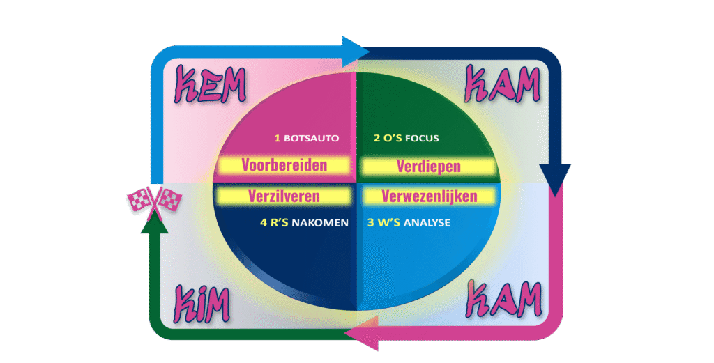 - Stappen: KEM (kwalificeren), KAM (aandrijven) en KIM (borgen).
